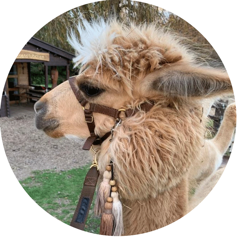 Sanchez ist ein Classic Lama mit einem sehr liebevollen Charakter. Er geht gerne an den Zaun und begrüßt die Besucher. Auch bei Kindern zeigt er sich sehr interessiert. Er läuft gerne mit uns spazieren und macht das Lamatrio perfekt.